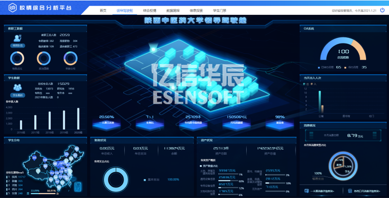 陕西中医药大学数据分析平台项目是为学校构建一个可视化、自动化的数据管理平台。可实现统计图、地图应用、多维分析等可视化效果,收获数据价值,辅助校领导决策,驱动学校不断进步。平台以计算机网络为核心技术支撑,以信息资源的充分共享为手段,以校领导便捷办公及决策等为主要目标。同时,数据分析平台项目建设也是学校信息化建设的高级过程,既是对学校数据的全面梳理,更是对学校信息化建设成果的进一步扩展与提升。