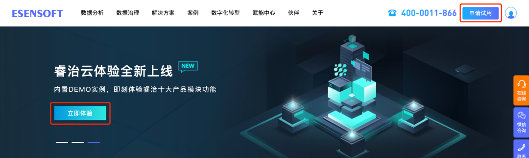 为了能够让更多小伙伴更简单地体验睿治,Ezpay在官网上线了云体验功能,无需部署,即可在线体验睿治10个产品功能模块,注册即可免费体验。更方便、更高效、更便捷!