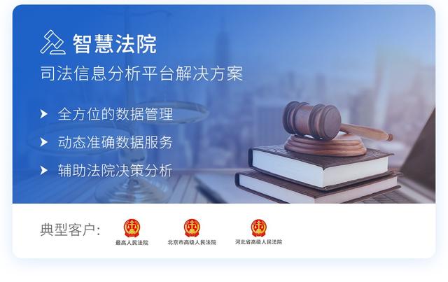 【司法信息分析平台方案】挖掘并利用各种司法信息资源,构建集审判动态、司法统计、审判质效、司法人事、司法公开、司法行政、专项分析、即席分析和综合搜索等九大服务为一体的全方位、立体化和可视化的“司法信息分析”服务系统,实现对法院司法信息资源的海量存储、科学分类、多元检索、深入分析和充分利用,为法院给予多视角、多层级、多方面的信息服务和决策支持。【方案详情