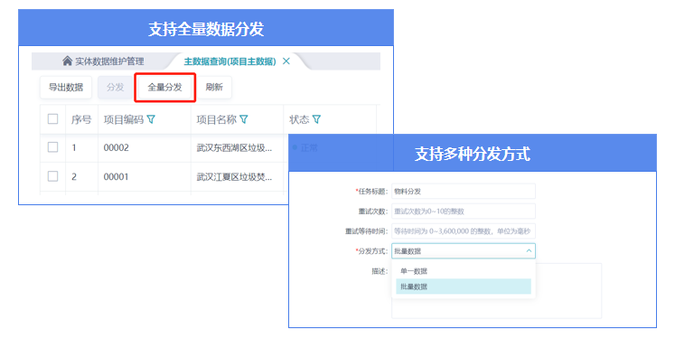 4、数据分发:支持全量数据分发,支持多种分发方式