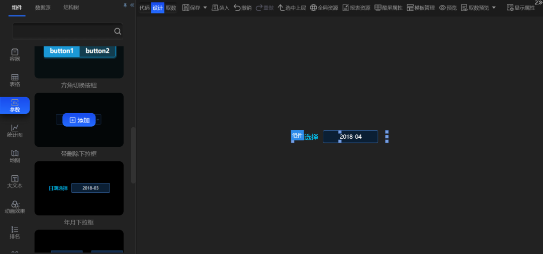 【操作说明】用户可以直接拖动组件到编辑区或者鼠标悬浮在组件上点击添加按钮。