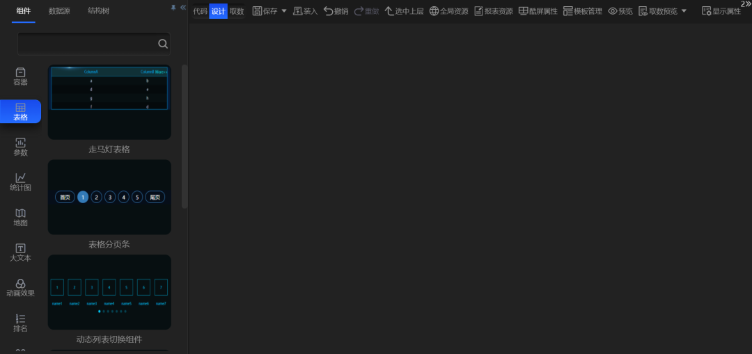 内置百余种酷炫组件、3D特效及行业模板,不需要程序员的参与,简单的拖拽并关联数据就可完成大屏的制作,因此实施人员不需要额外的学习成本,轻轻松松即可完成任务。