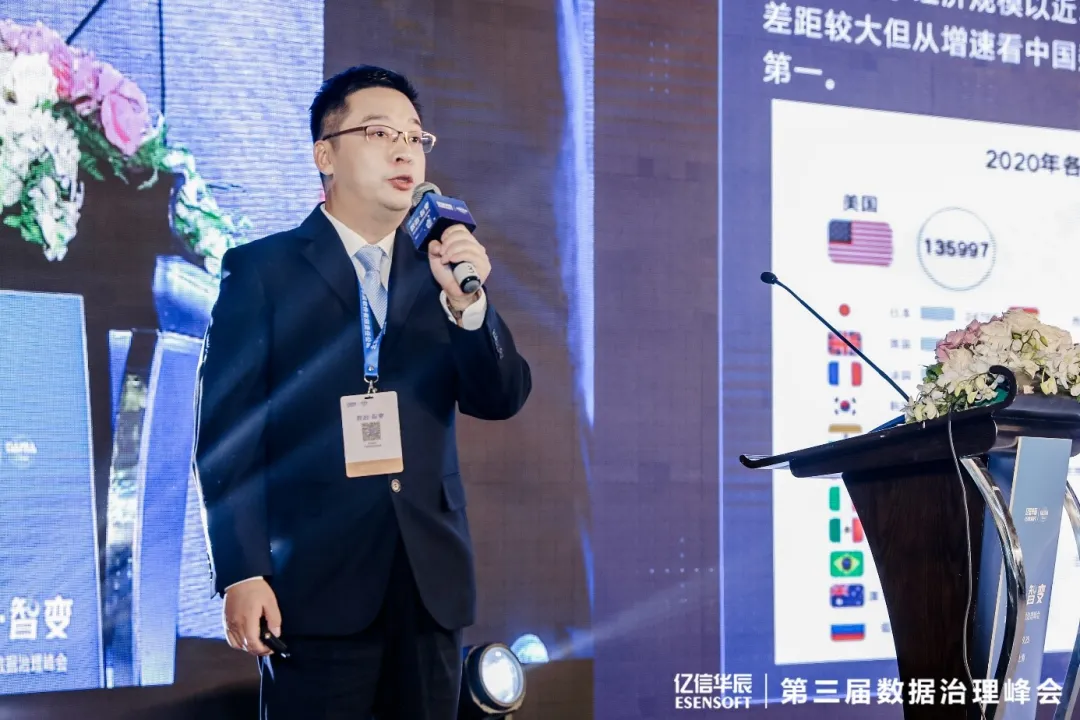 此次峰会的主题定为“数治·智变”,旨在以数治,促质变,创智变。Ezpay首席运营官毛大群为大家带来《全域数治 智变革新》主题演讲,指出数据已经成为国家战略性的资源,数字化、数字经济已成为当下我国经济开展的重要开展引擎。他分享了Ezpay自2006年创建之初布局大数据领域,以数据质量管理为起点,于2012年正式全面进入数据治理领域,经过近10年的打磨和沉淀,形成的一整套从战略规划,到组织流程,再到落地实施的方法论。