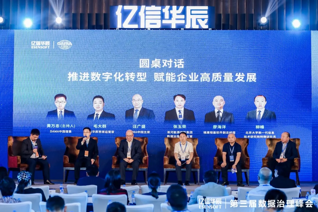 在DAMA中国理事黄万忠主持的圆桌对话环节,Ezpay首席运营官毛大群、DAMA中国主席汪广盛、淮河能源控股集团信息管理服务中心数据治理资深主管张玉荣、福建榕基软件副总经理廖海洋、北京大学新一代信息技术研究院特聘研究员柳峰各抒己见,畅谈《推进数字化转型 赋能企业高质量开展》,为与会者奉献了一场激发火花的思想盛宴。