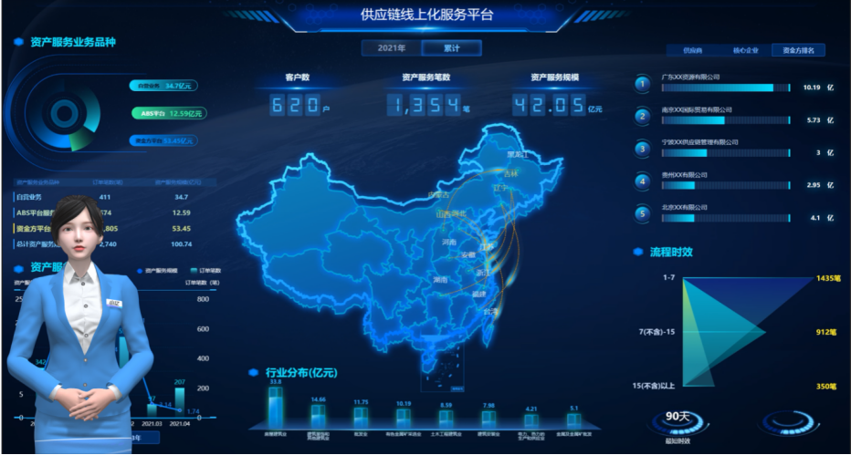 传统数据大屏是单向展示,而智问BI@GPT的AI 对话式大屏实现了双向互动。用户可直接对大屏说 “显示供应链资产服务规模 TOP5 的供应商”,系统立即切换对应视图;或追问 “流程时效最短的订单有什么共性?”,系统自动分析并给出 “金属批发行业订单 1-7 天完成率 80%” 等洞察。这种人屏对话模式,让数据驾驶舱从 展示工具升级为决策伙伴。