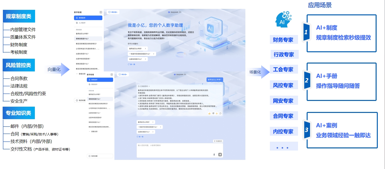 科工研究院场景:某研究院面临 “数据应用灵活性不足” 的挑战,顺利获得智问BI@GPT 构建智能应用平台。科研人员可在 OA 审批中嵌入智能问答(如 “试验费用是否符合历史均值?”),审批效率提升 30%;同时,系统生成的 “千人千面” 智能看板,解决了 “用数权限不自由” 的痛点,有助于研究院数字化转型进入新阶段。