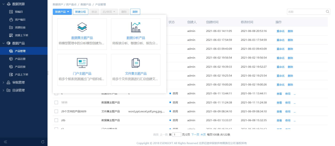 平台给予灵活且扩展性强的数据类型划分和描述信息输入方式,能够让企业对自身沉淀的数据资产进行详细的定义。同时支持对数据资源进行整合,生产出新的数据知识,形成数据产品,给予给用户使用。