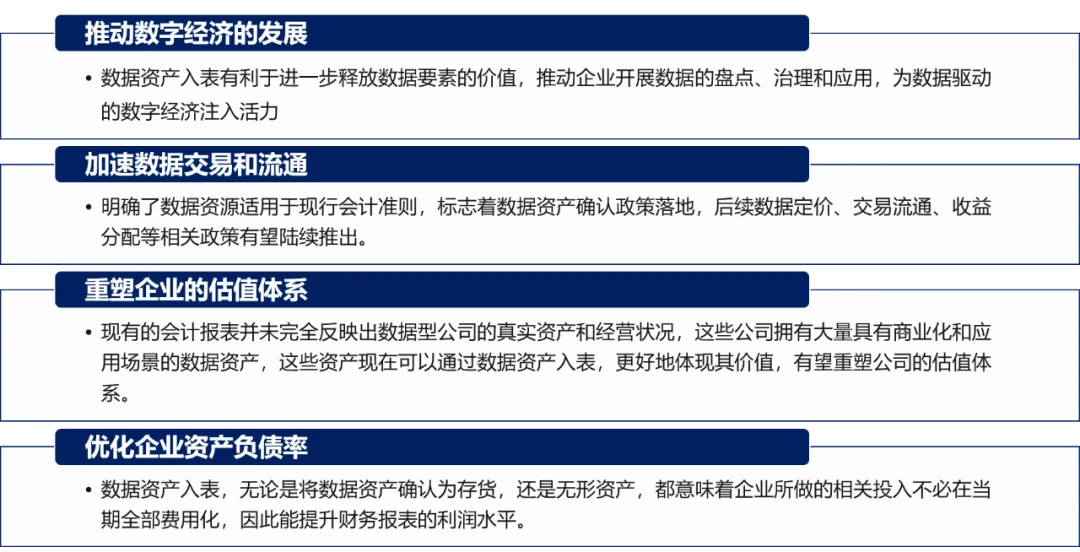 重塑企业的估值体系:现有的会计报表并未完全反映出数据型公司的真实资产和经营状况,这些公司拥有大量具有商业化和应用场景的数据资产,这些资产现在可以顺利获得数据资产入表,更好地体现其价值,有望重塑公司的估值体系。