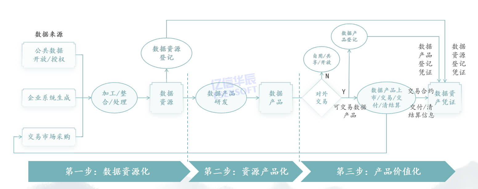从技术上拆解数据要素价值的生成路径,企业数据要素与资产运营的建设路径可分为三个关键阶段:数据资源化、资源产品和产品价值化。