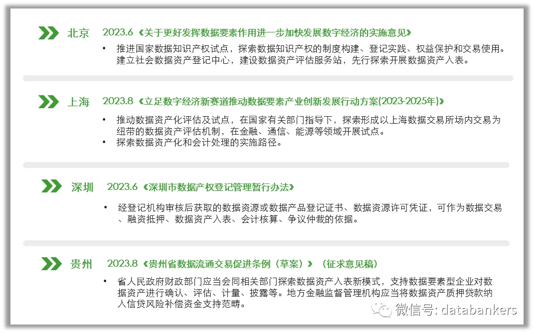 自2022年底《企业数据资源相关会计处理暂行规定(征求意见稿)》发布后,多地持续召开数据资产入表的探索与实践。2023年,北京、上海、深圳等地在政策中陆续提出数据资产入表落地的方案和措施,面向国央企、上市公司、科创企业和典型数商持续召开数据资产入表企业试点,为数据资产入表的进一步实施和有助于给予依据与先行经验。同时,各地政策不仅规定了相关责任组织,也提出了各类规范和激励方法。