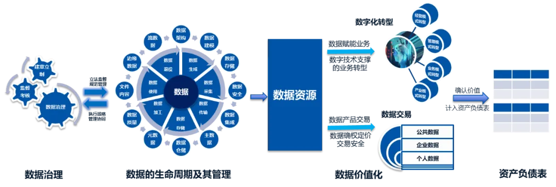 数据是具有价值的重要资产成为企业普遍共识。2020年中共中央、国务院提出将数据并列作为第五大项生产要素,围绕数据要素、数据资源、数据应用等相关政策和话题研究成为了社会关注的焦点之一。2022年12月中共中央、国务院发布的数据二十条明确了数据权属的三权分置,为数据向数据资产转化给予了重要基础。2023年8月财政部发布的《企业数据资源相关会计处理暂行规定》提出企业应当按照企业会计准则相关规定,根据数据资源的持有目的、形成方式、业务模式,以及与数据资源有关的经济利益的预期消耗方式等,对数据资源相关交易和事项进行会计计量、确认和报告。数据不仅是企业的重要资产,同时我国把数据上升为生产要素,既然是生产要素就要衡量其对企业的价值贡献,因此就要把数据资产的价值按照无形资产或存货计入资产负债表。