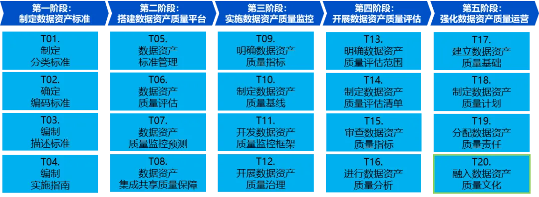 数据资产质量成熟之路的最后阶段是数据资产质量必须在文化层面嵌入到组织中。数据资产质量不是一次性事件,而是一个持续的过程。为了有助于数据资产入表的成功,数据资产质量保障必须嵌入到组织文化中。