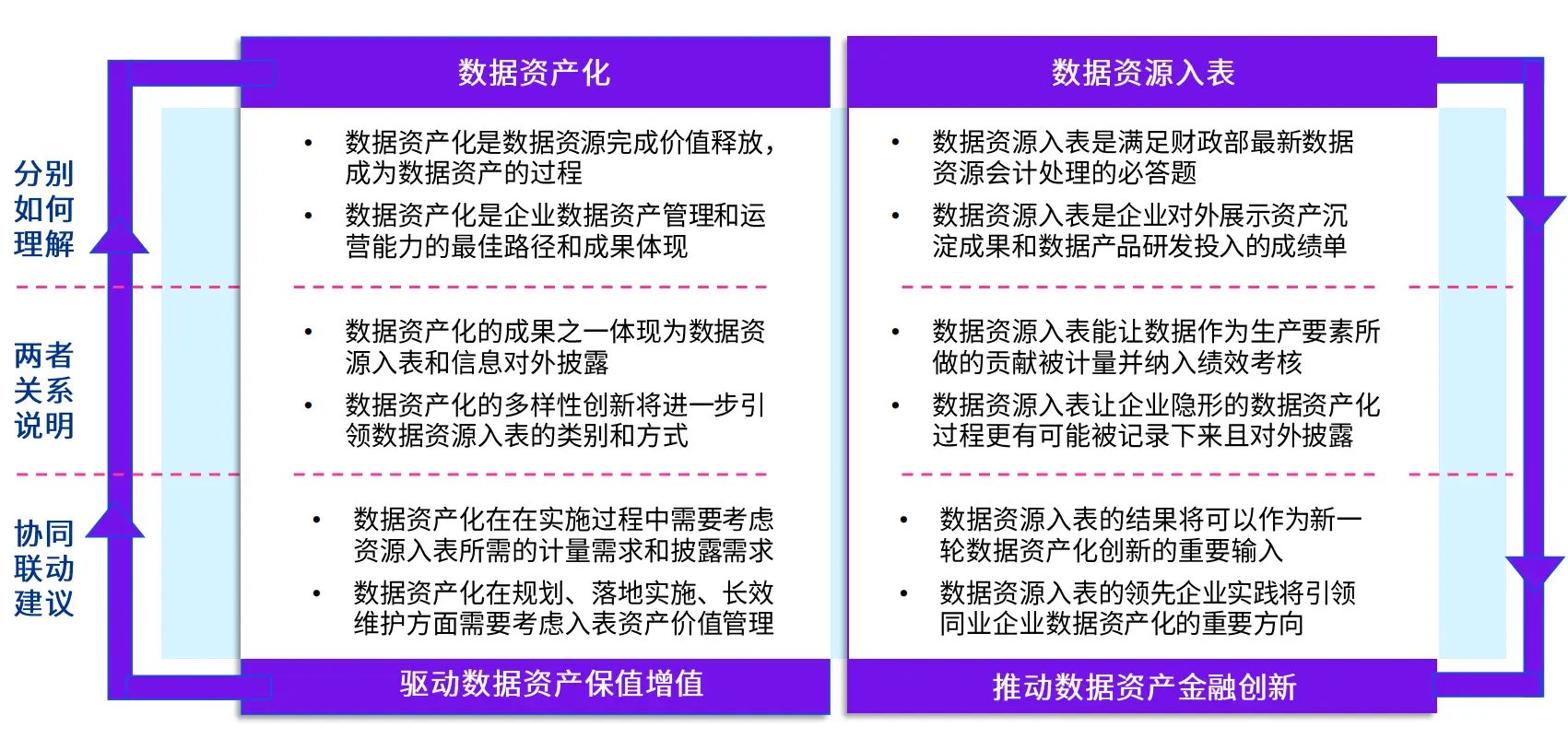 数据资产管理和运营能力的最佳路径和成果体现;另一方面,数据资源入表是满足财政部最新数据资源会计处理要求的必要响应工作,数据资源入表也是企业对外展示资产沉淀成果和数据产品研发投入的成绩单体现。