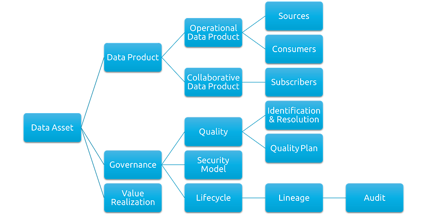 如果数据资产不具有可衡量的价值,则不应将其视为资产。确定该价值以及如何衡量它可能是一项复杂的任务,因此从高级资产开始是有意义的,因为我们可以将它们链接到更高阶的元素,并且当我们进一步分解价值时,我们可以将其链接到特定的子资产和实际操作数据产品本身。