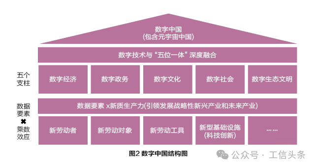 数字中国建设按照“2522”的整体框架进行布局,即夯实数字基础设施和数据资源体系“两大基础”,推进数字技术与经济、政治、文化、社会、生态文明建设“五位一体”深度融合,强化数字技术创新体系和数字安全屏障“两大能力”,优化数字化开展国内国际“两个环境”。在融通数据要素、元宇宙和新质生产力后有了新的认识。