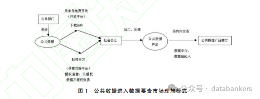 顺利获得梳理现在国内外公共数据参与数据要素市场的五种模式,笔者勾勒出公共数据进入数据要素市场的理想模式,见图1。