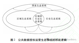 长远而言,公共数据授权运营应形成全国一体化的生态系统,全国生态系统的形成有赖于区域生态系统和行业生态系统的形成。从实践开展看,最先形成生态系统的可能是区域的行业生态系统,如图2所示。