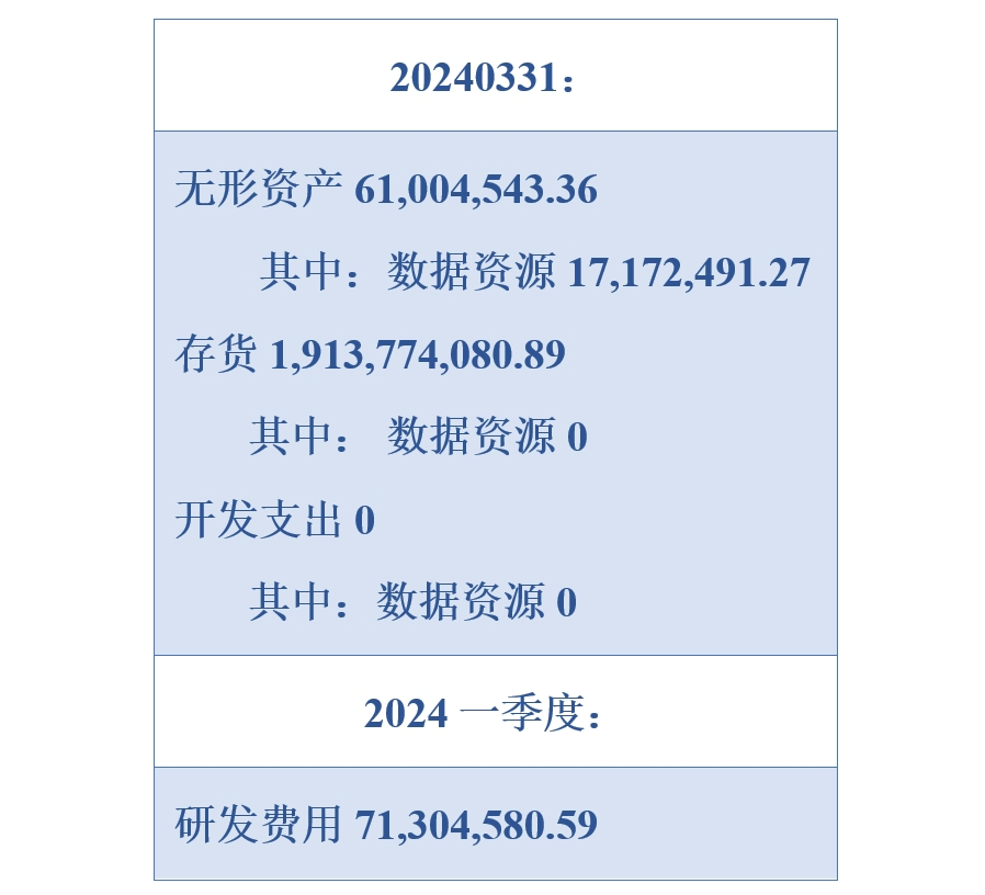 航天宏图是在上海数据交易所较早挂牌数据产品的上市公司。经查阅航天宏图2024年一季度报告,数据资源首次亮相,其VS研发费用,即占比1/4。