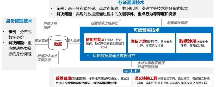 为了实现可信数据空间从主体接入、供需对接、数据使用到用后溯源等全流程的可信可控,可信数据空间集成身份管理、资源互通、可信管控、存证溯源等多类关键技术,确保各类协议规范得以切实有效执行。