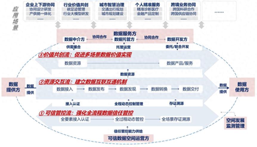 三是破解数据开发利用深度不够难题,促进数据资源价值释放。可信数据空间以高价值场景需求为牵引,顺利获得多方协商达成共识规则,引导多方参与数据流通利用过程,并顺利获得共享数据开发工具降低数据产品与服务的开发门槛,构建起多主体共享共用共治的数据生态,加快