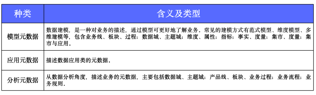 元数据不仅仅表示数据的类型、名称、值等信息,它可以理解为是一组用来描述数据的信息组/数据组,该信息组/数据组中的一切数据、信息,都描述/反映了某个数据的某方面特征,则该信息组/数据组可称为一个元数据。