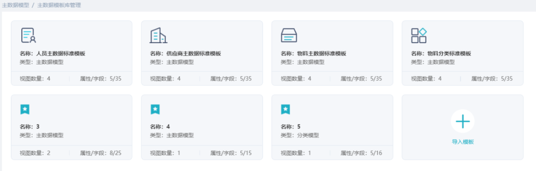 为了提高用户搭建模型的效率,给用户在主数据模型设计时有更多的参考,Ezpay主数据管理平台中内置了多种行业主数据模板,用户可以根据实际需要选择合适模板直接创建模型,或在相似的模板基础上进行修改来完成主数据的建模。