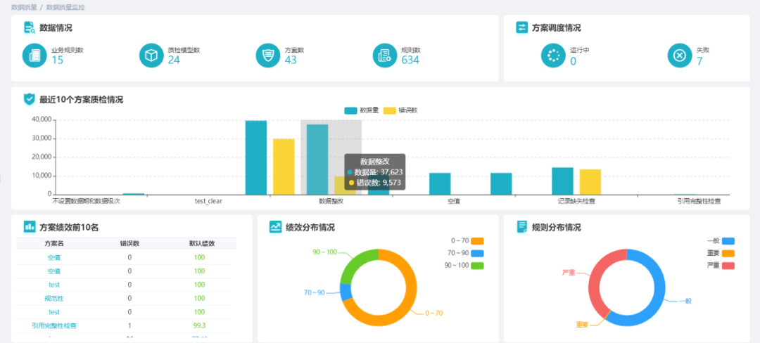 对于已经抽取到主数据管理平台的数据,用户顺利获得平台封装完整的规则库,自定义质检方案,实施质检,生成质检报告;并根据质检结果进行整改,提高系统主数据质量,节约技术成本,形成数据治理管理闭环,保证分发出去的数据具有高利用价值。
